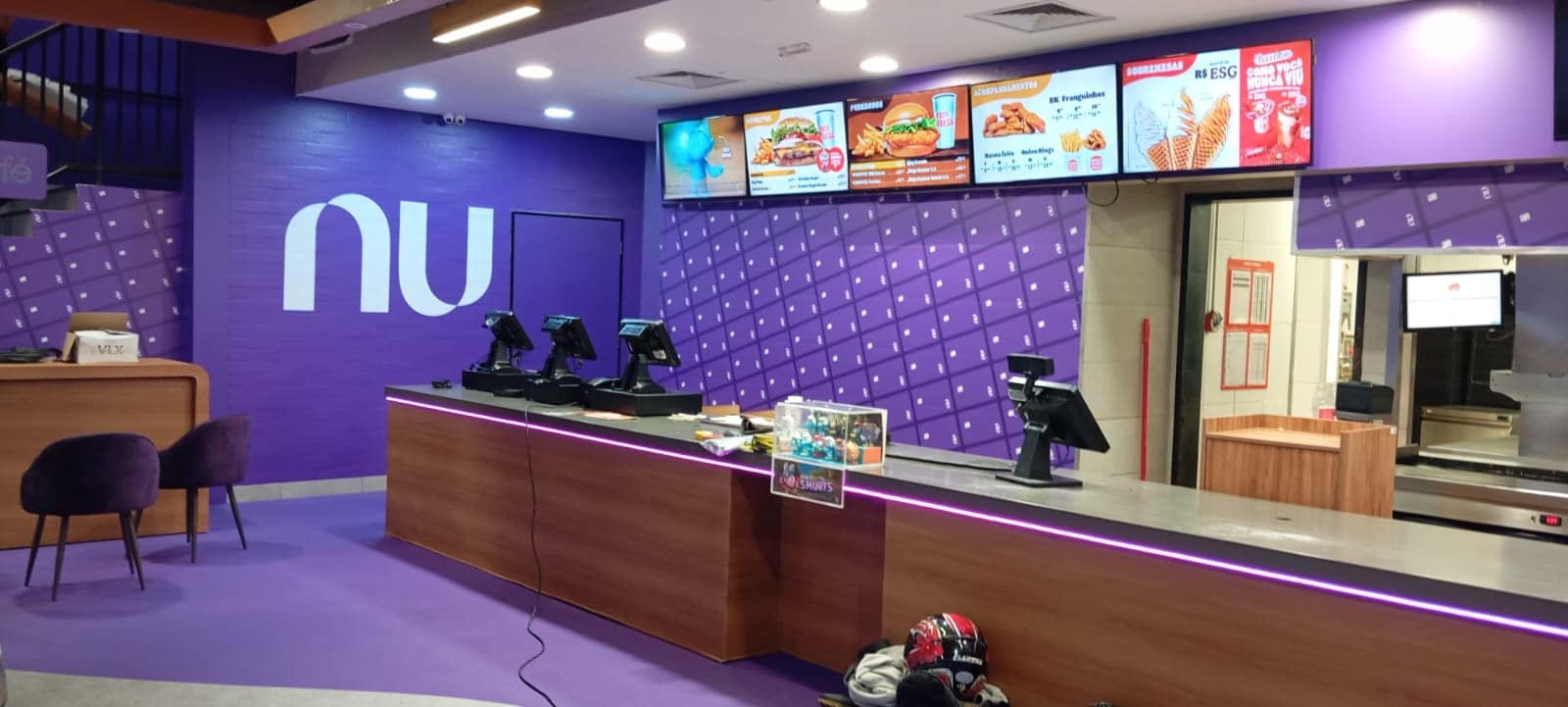 Em uma parceria inusitada, o Nubank inaugurou um espaço físico dentro de restaurantes Burger King. A iniciativa, que pela primeira vez deu ao banco uma loja física, rompeu categorias e aproximou a empresa do cotidiano das pessoas. A estratégia reforça a expansão de relacionamento e awareness em ambientes de alto fluxo.